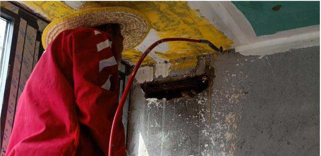 先检查漏水部位,找准漏水点,清理渗漏部位附近的污物;确认孔位,开始钻孔。